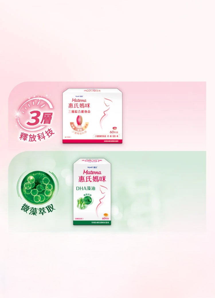 - 根據台灣婦產科醫學會於2025年審核通過的「孕期營養吃對了嗎?」衛教單張,惠氏媽咪三層綜合維他命獲台灣婦產科